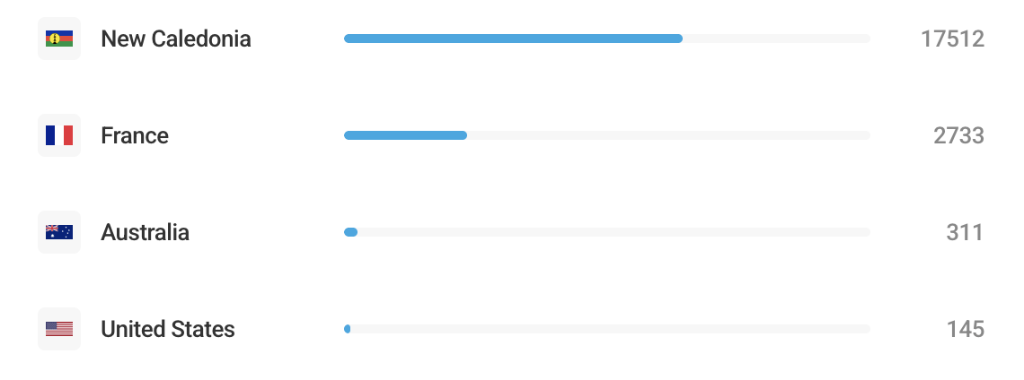 Difficile à croire, et pourtant : notre carte de lecture couvre déjà plus de 70 pays. De Nouméa à Paris, de Sydney à Bruxelles, de Wallis à Montréal. Avec plus de 17 500 visiteurs uniques depuis la Nouvelle-Calédonie et près de 2 800 depuis la métropole, notre média s’impose comme un nouveau rendez-vous d’information franc et libre, attendu par beaucoup, redouté par certains.