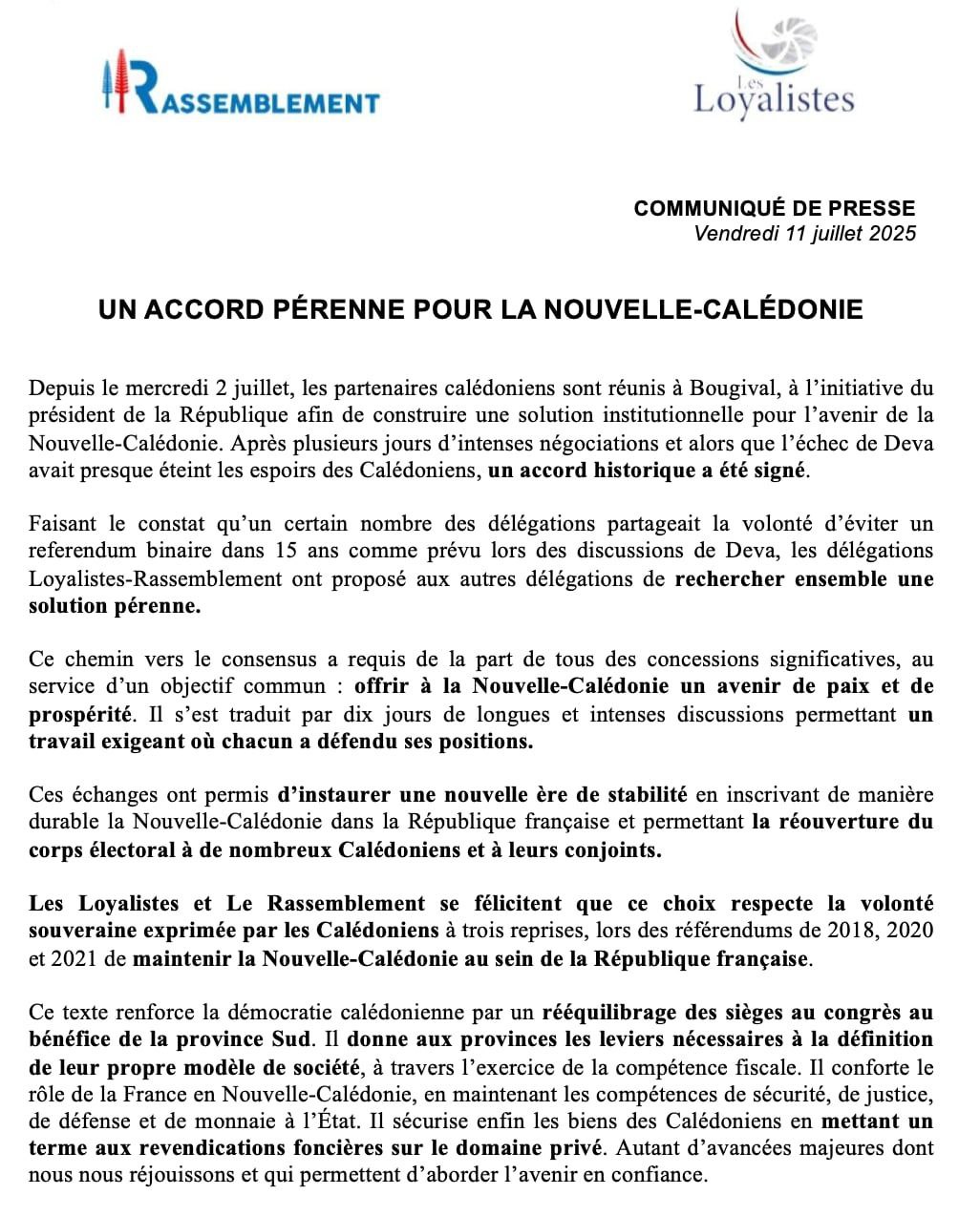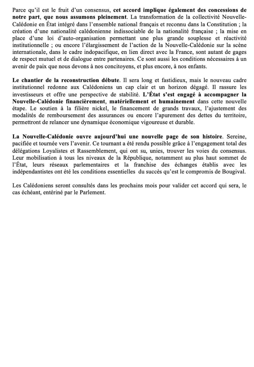 Cet accord sort la Nouvelle-Calédonie de la spirale de l’incertitude dans laquelle elle est enfermée depuis des décennies. Nous avons réussi à trouver une voie qui permette de respecter pleinement le choix souverain des Calédoniens de maintenir la Nouvelle-Calédonie dans la France et aux Calédoniens de rester Français.