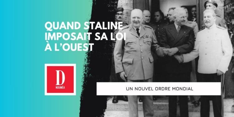 Du 17 juillet au 2 août 1945, les « Trois Grands » se réunissent à Potsdam pour décider du sort de l’Allemagne. Staline, Truman et Churchill (remplacé en cours de conférence par Attlee) entendent poser les derniers jalons de l’après-guerre. Mais derrière la façade de coopération, la méfiance s’installe. L’URSS de Staline, qui a conquis militairement l’Europe centrale, impose, de fait, sa loi à l’Est. L’Occident, encore sonné par la guerre, ne peut que constater le rapport de force.