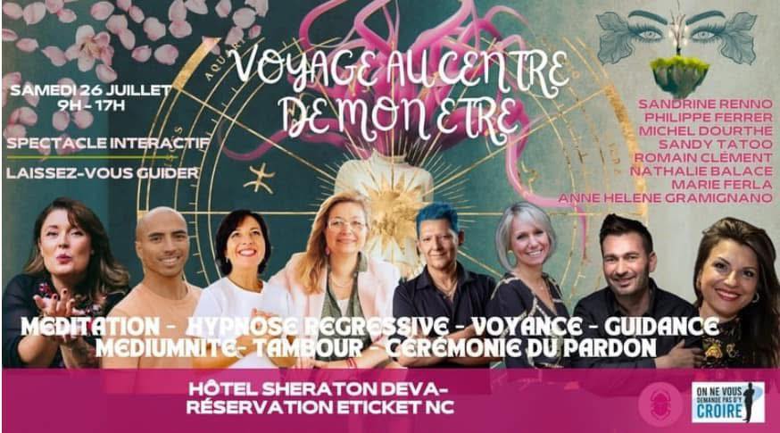 Samedi 19 juillet à Nouméa (Méridien) et samedi 26 juillet à Bourail (Sheraton Deva), le public est invité à participer à « Voyage au Centre de Mon Être », une journée entière de spectacle interactif, d’exploration intérieure et de partages vibrants. Chacun y vivra des temps de méditation, de canalisation, de dialogue, d’échange énergétique et de soins collectifs.