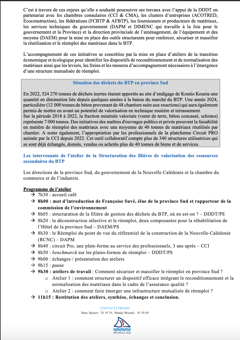La province Sud accélère sur l’économie circulaire avec un atelier clé sur la valorisation des déchets du BTP ce 25 juillet.