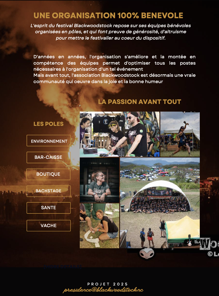 La sécurité, elle aussi, est pensée dans le détail : brigade de La Foa, gendarmes réservistes, vigiles et volontaires expérimentés assurent le bon déroulement de la fête. L’esprit du festival repose sur une organisation 100 % bénévole, structurée en pôles (santé, environnement, backstage, bar-caisse, boutique…), symbole d’une communauté soudée par la passion.