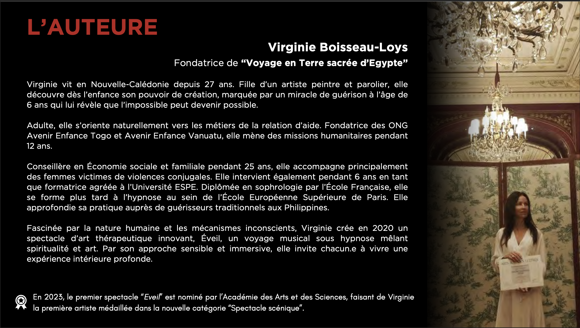C’est une expérience rare qui s’apprête à marquer la rentrée culturelle calédonienne. Le spectacle « Voyage en terre sacrée d’Égypte » de Virginie Boisseau-Loys promet une immersion totale dans l’univers mystérieux de l’hypnose et de l’art musical. Entre exploration intérieure et hommage à l’Égypte antique, l’événement s’annonce comme un rendez-vous incontournable pour les amateurs de culture, de spiritualité et de sensations inédites.