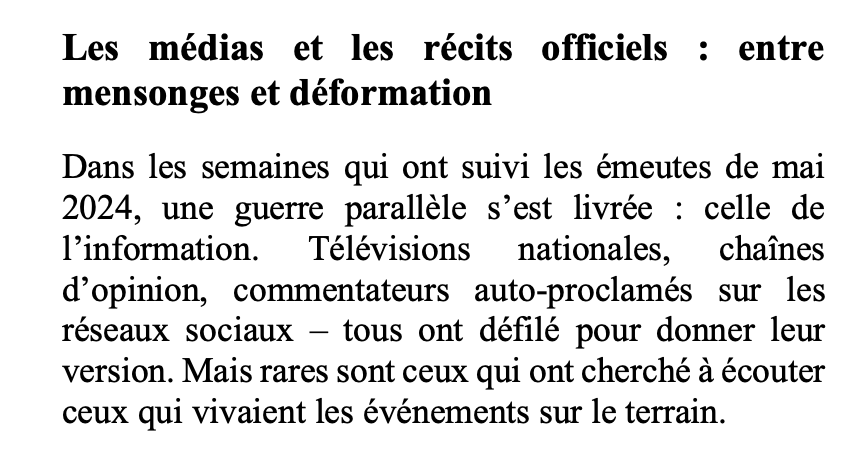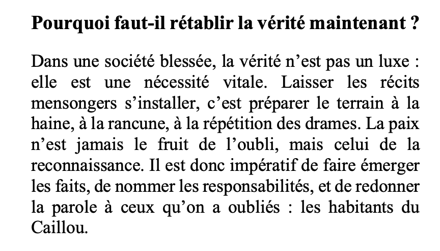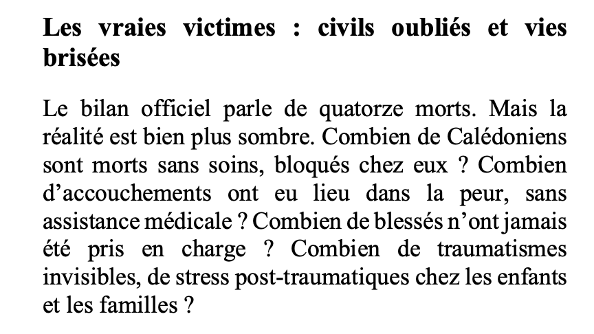 Aux décideurs et aux médias : écoutez la voix de la Calédonie. Non par compassion, mais par devoir. Car un peuple privé de sa vérité est un peuple condamné à revivre ses drames.