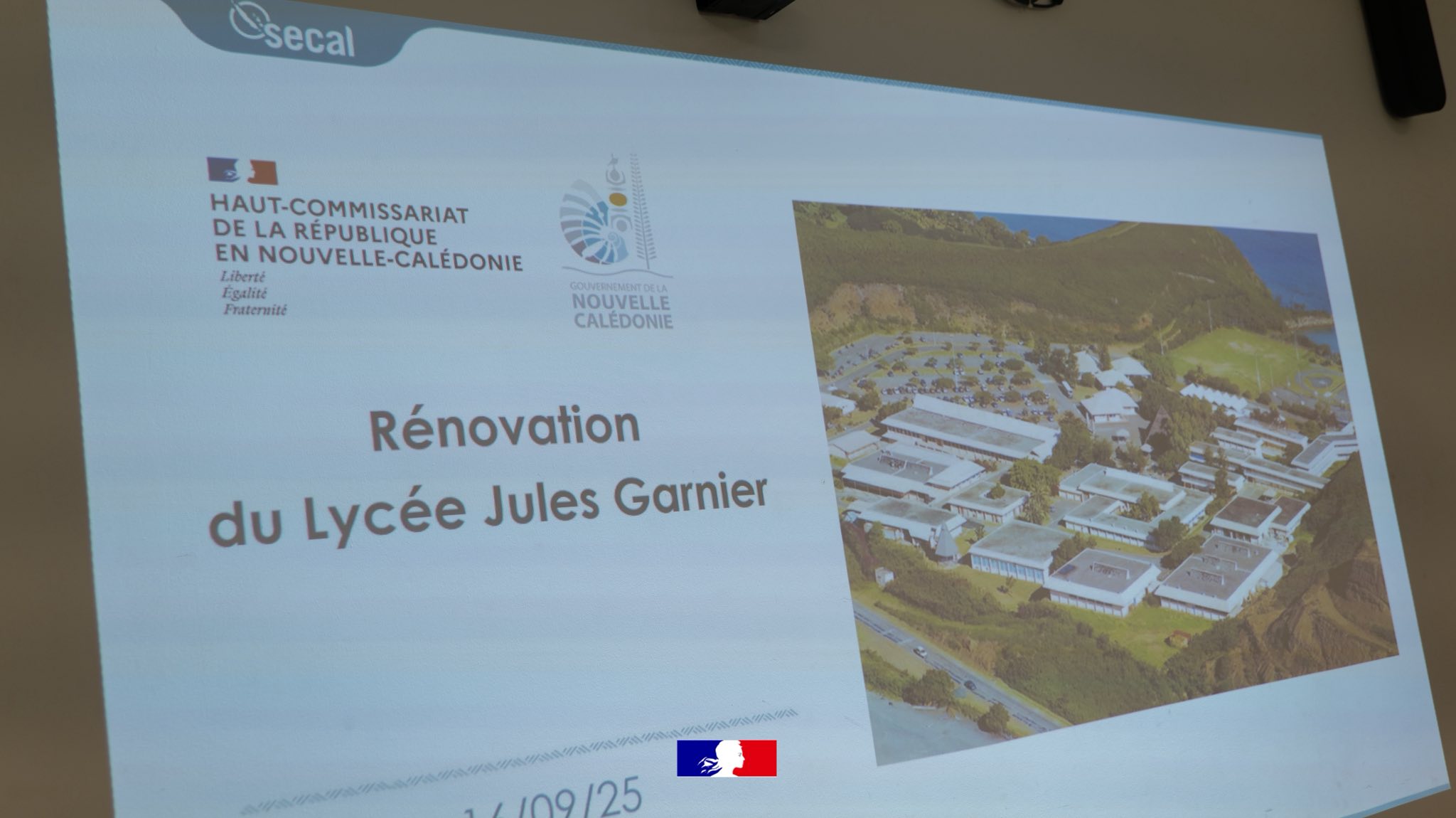 Le lycée Jules-Garnier a fait peau neuve. Ce mardi 16 septembre, le membre du gouvernement chargé de la construction, Petelo Sao, et le haut-commissaire de la République, Jacques Billant, ont officiellement réceptionné les travaux de rénovation aux côtés du vice-recteur Didier Vin-Datiche et des représentants du gouvernement. Plus qu’un simple établissement, Jules-Garnier est un pilier de l’enseignement calédonien, accueillant plus de 1 600 élèves, de la seconde aux classes préparatoires aux grandes écoles.