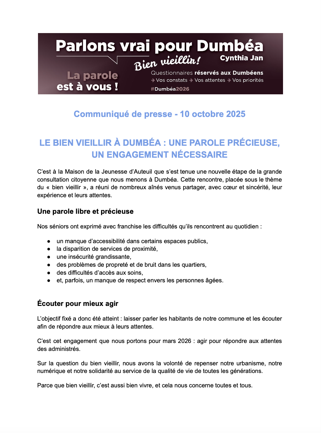 Chaque voix compte, qu’elle émane d’un jeune parent, d’un retraité ou d’un professionnel de santé. Dumbéa veut bâtir un projet collectif, où chaque génération trouve sa place.