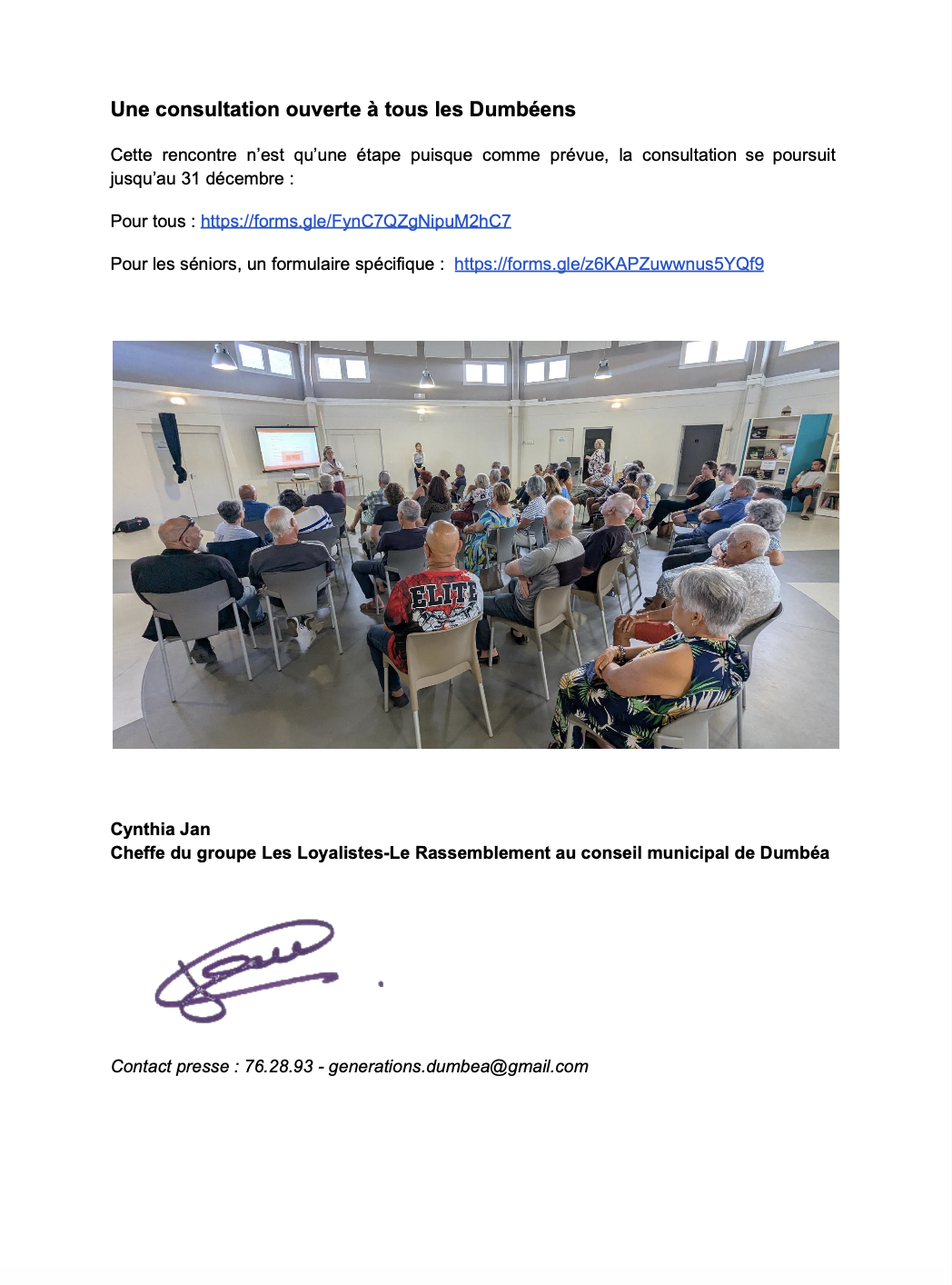 Cette démarche, portée par le groupe Les Loyalistes–Le Rassemblement au conseil municipal de Dumbéa, n’est pas qu’un simple sondage : c’est un engagement politique et humain.