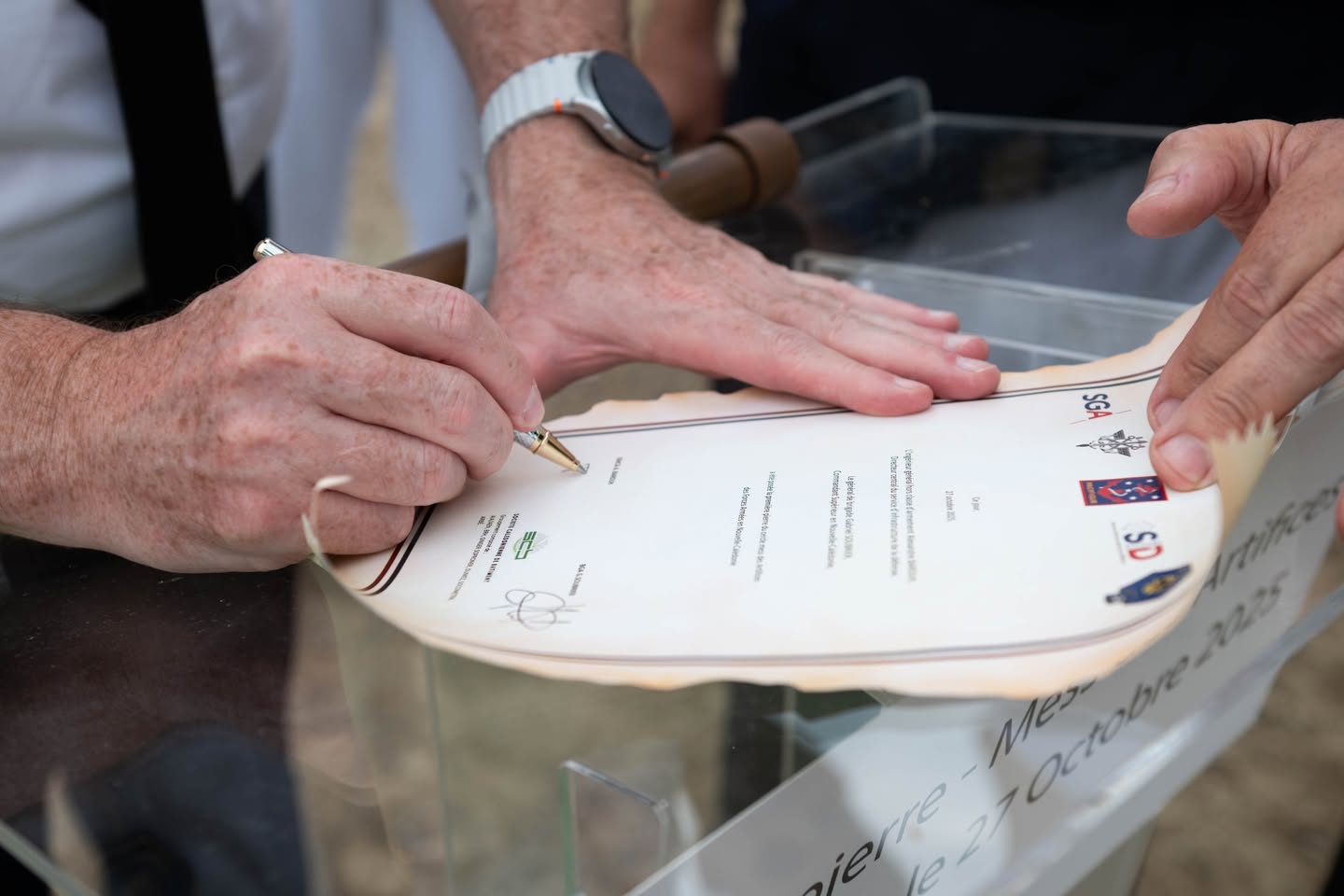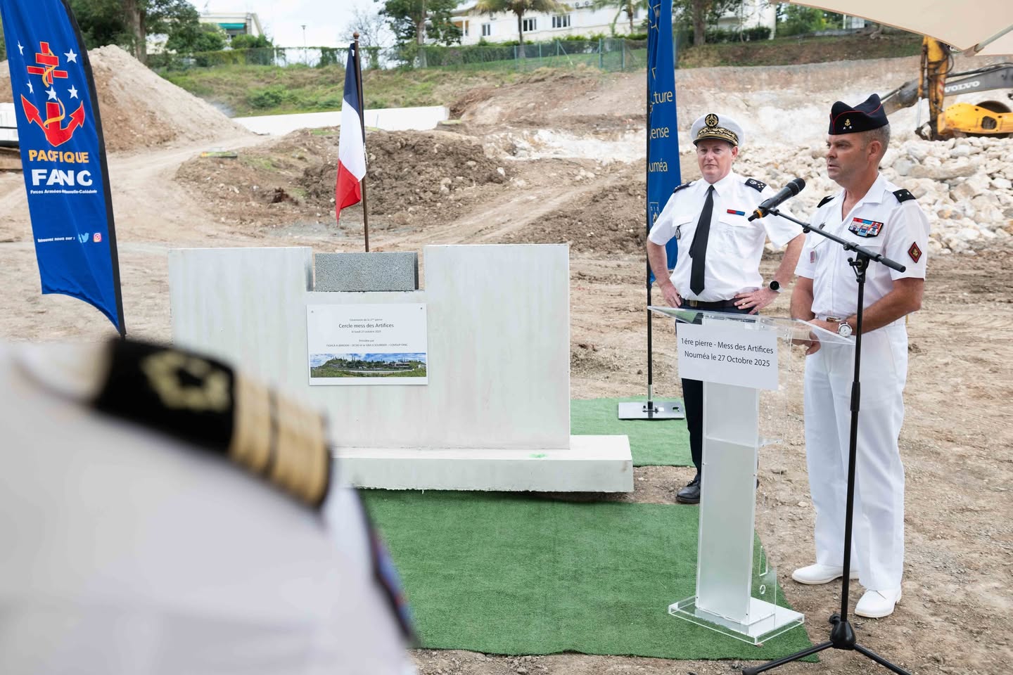 Ce lundi 27 octobre 2025, le général de brigade Gabriel Soubrier, commandant supérieur des Forces armées en Nouvelle-Calédonie, et Alexandre Barouh, ingénieur général hors classe de l’armement et directeur central du Service d’infrastructure de la Défense, ont posé la première pierre du futur cercle-mess des Artifices.