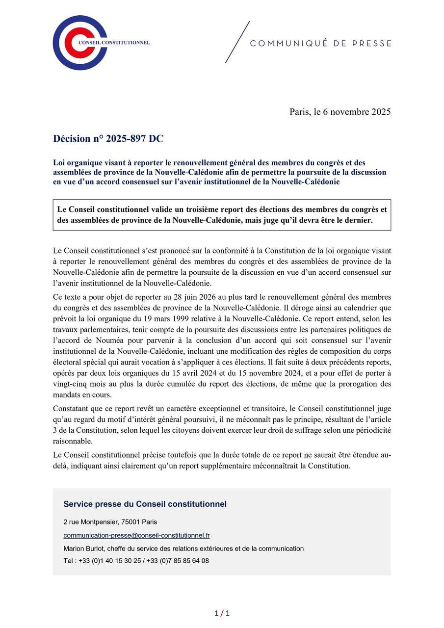 La décision qui verrouille le calendrier calédonien