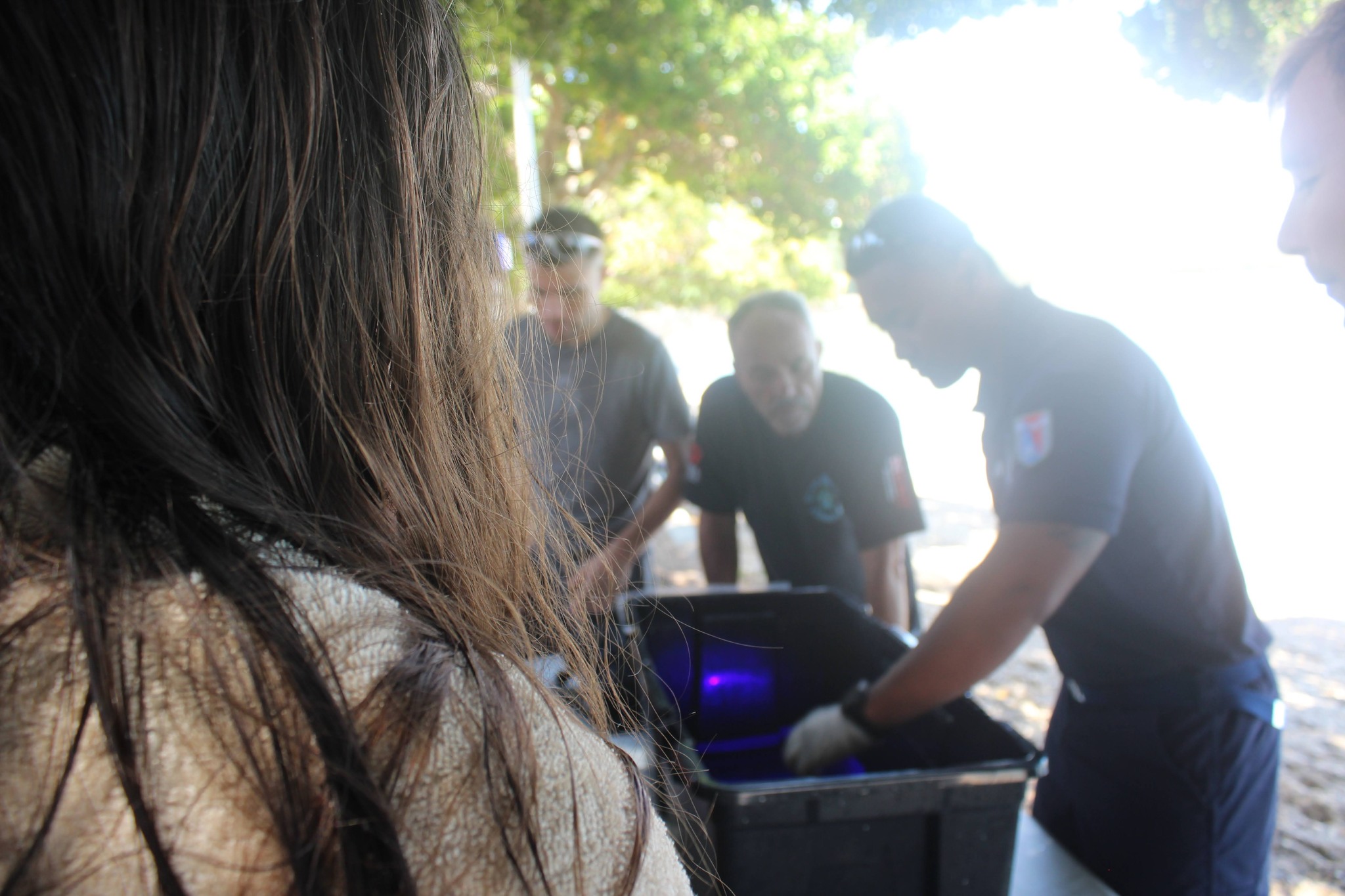 La troisième phase a ramené tout le monde sur la terre ferme. Les gendarmes ont réalisé une démonstration de révélation d’empreintes par la méthode SPR, un procédé permettant de mettre en évidence des traces papillaires sur des surfaces difficiles, notamment après immersion.