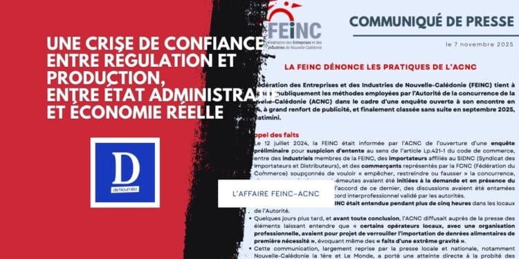 La tension monte dans les cercles économiques calédoniens. Un an après une enquête très médiatisée pour entente présumée, la Fédération des Entreprises et Industries de Nouvelle-Calédonie (FEINC) dénonce les “méthodes partiales et déconnectées” de l’Autorité de la concurrence (ACNC). L’affaire, classée sans suite en septembre 2025, relance un débat fondamental : celui de la transparence des institutions indépendantes face à l’opinion publique et aux acteurs économiques.