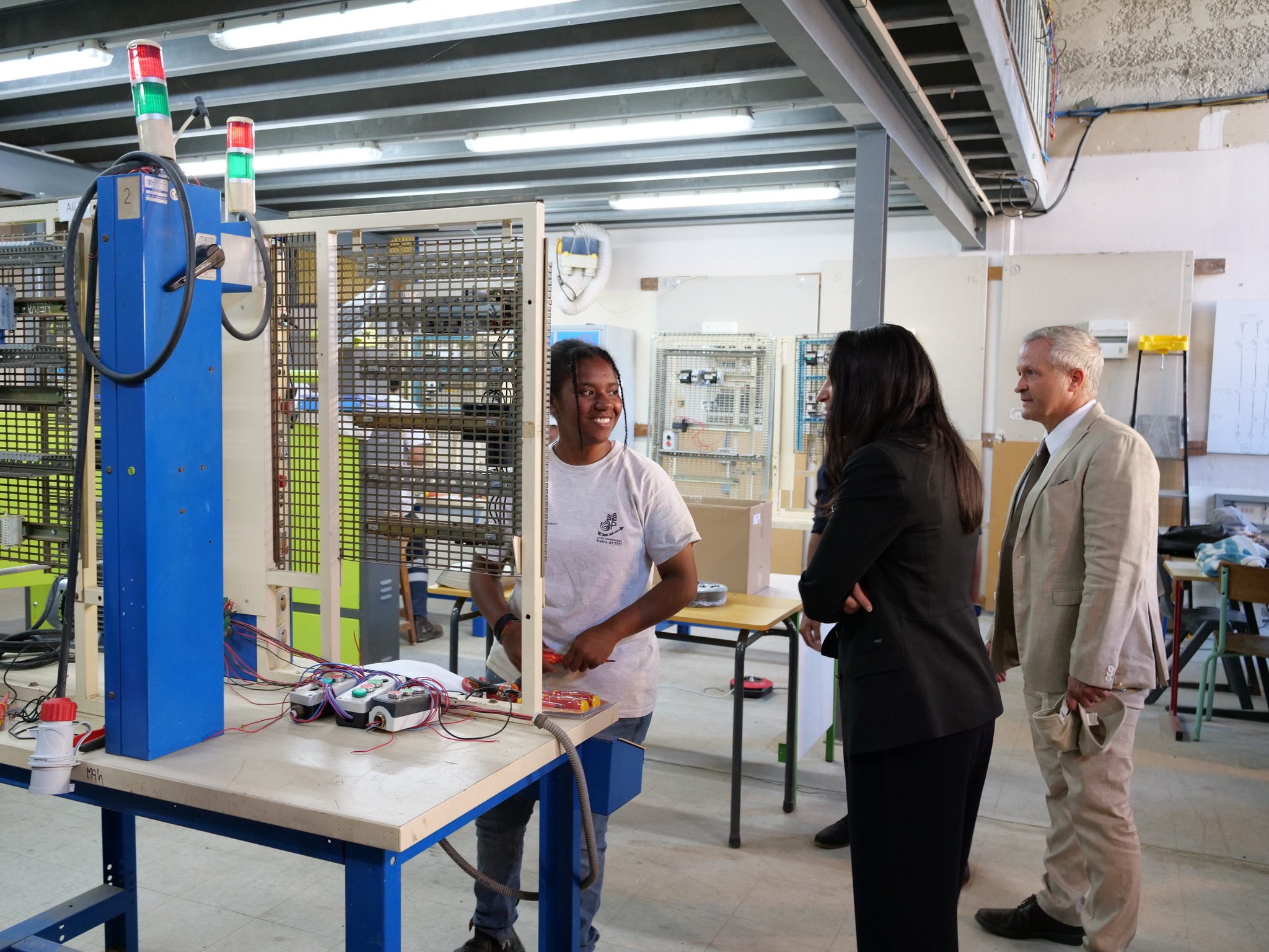 Le proviseur, Éric Vallon, a détaillé les phases de reconstruction et la rénovation déjà engagée. Bâtiments remis debout, ateliers à remettre à niveau, internat à rééquiper : les besoins sont massifs. « Elle était à l’écoute, vraiment », assure-t-il.
