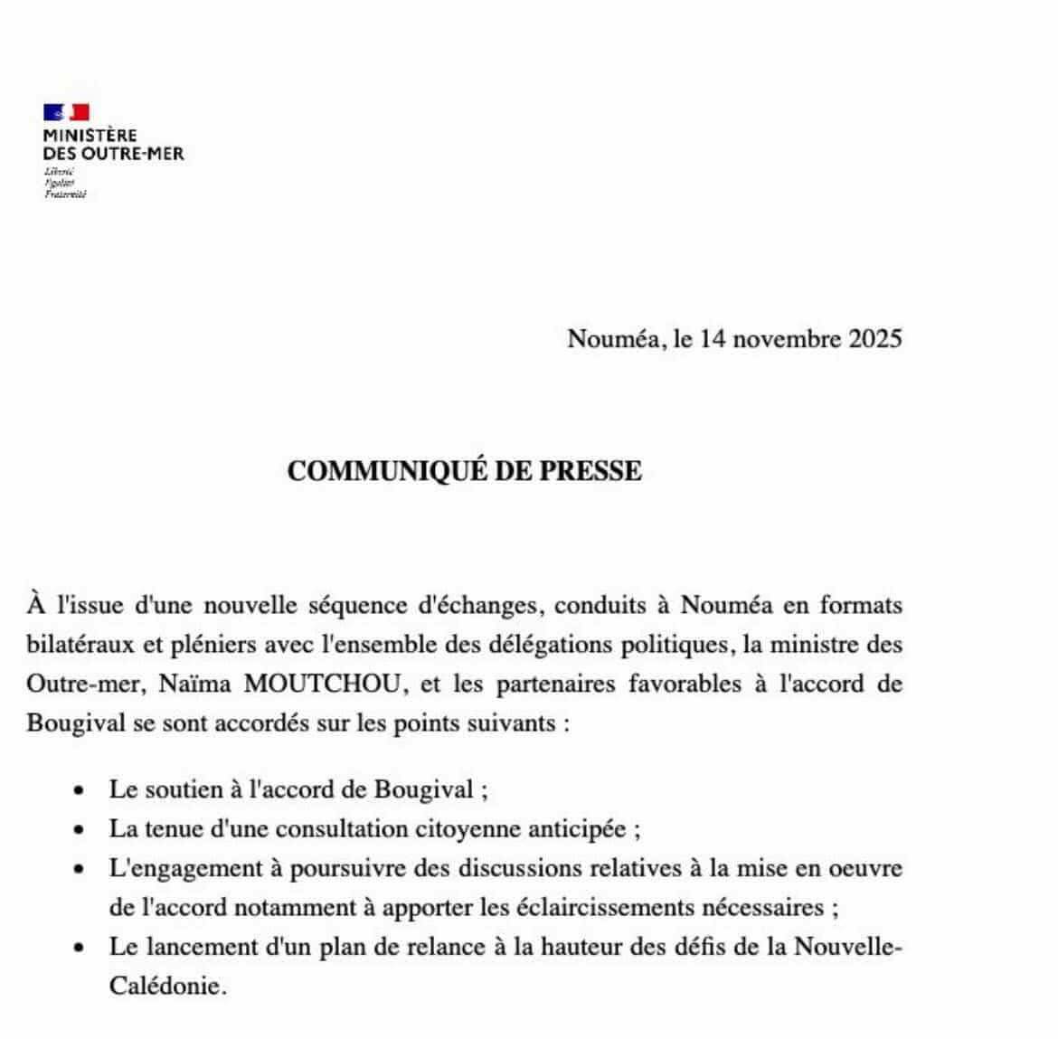Seule ombre au tableau : le FLNKS, désormais amputé du Palika, a refusé de s’engager dans cette dynamique.