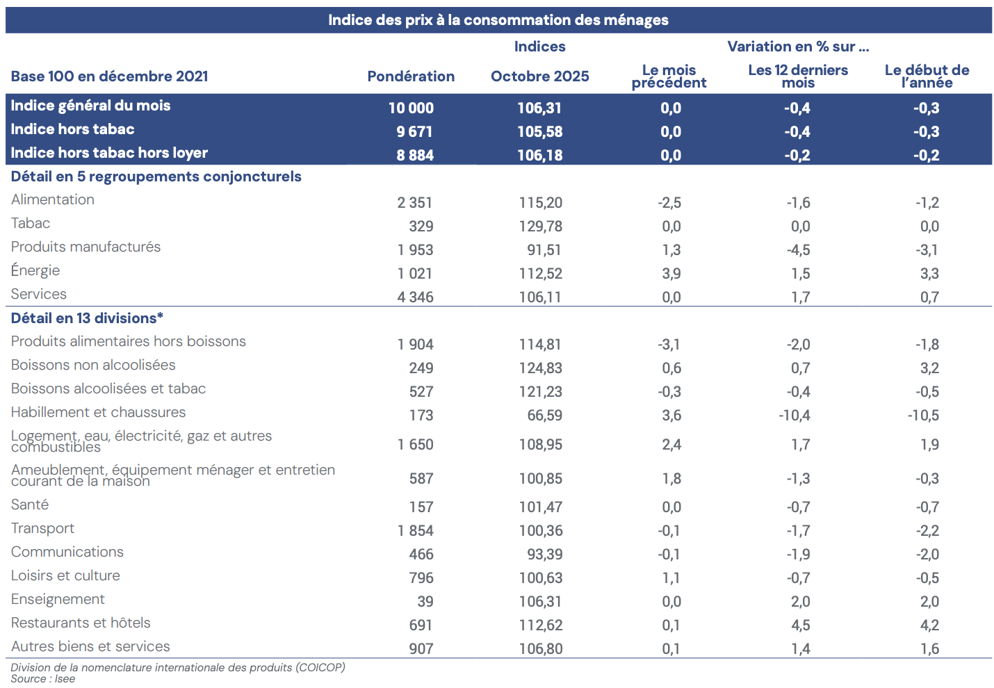 En octobre 2025, l’indice général des prix à la consommation affiche un trompeur +0,0 %, après une baisse en septembre. Cette stagnation, présentée comme un signe d’apaisement, dissimule en réalité des dynamiques opposées et profondément inégalitaires.