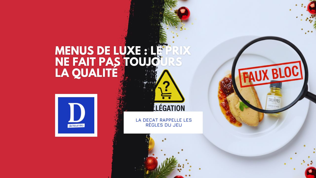 Tags: caviarconsommateurs Nouvelle-CalédonieDECATfoie grasmenus de fêtespratiques trompeusesprotection des consommateurssécurité décorations Noëltruffe