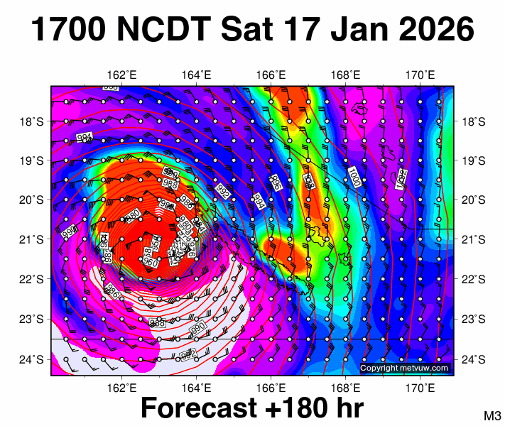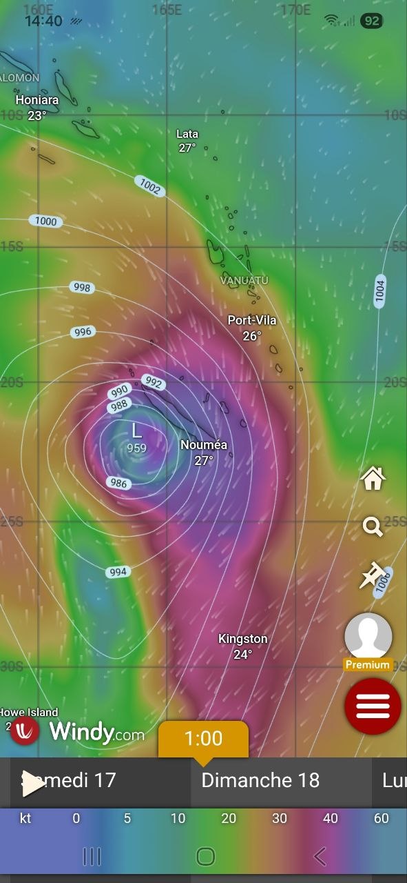 Lors des prévisions en cours, certains scénarios modélisent une chute de la pression atmosphérique autour de 960 hectopascales si le système se renforce en cyclone tropical. Concrètement, une pression aussi basse est caractéristique de cyclones intenses, souvent de catégorie 3 voire 4 sur les échelles internationales lorsque la tempête atteint son pic. Cela implique de forts vents soutenus, des rafales destructrices, des pluies diluviennes et une mer très agitée, capables d’engendrer inondations, vagues-submersion et dégâts matériels importants si le cœur du cyclone passe près de nos zones habitées. Ce niveau de pression n’est pas anodin : des cyclones historiques ayant atteint ou approché ces valeurs ont causé des impacts sévères dans le Pacifique Sud.