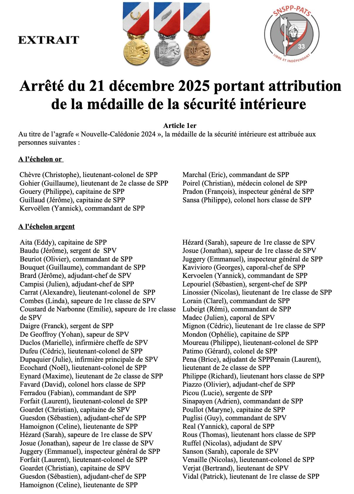 Le 21 décembre 2025, près de 4 000 personnes sont décorées de la médaille de la sécurité intérieure, assortie de l’agrafe « Nouvelle-Calédonie 2024 ».