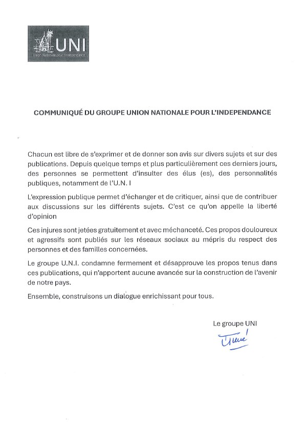 Dans ce contexte, le communiqué de l’Union nationale pour l’indépendance (UNI) résonne comme un rappel salutaire. Le mouvement souligne un principe trop souvent piétiné : critiquer est un droit, insulter ne l’est pas.