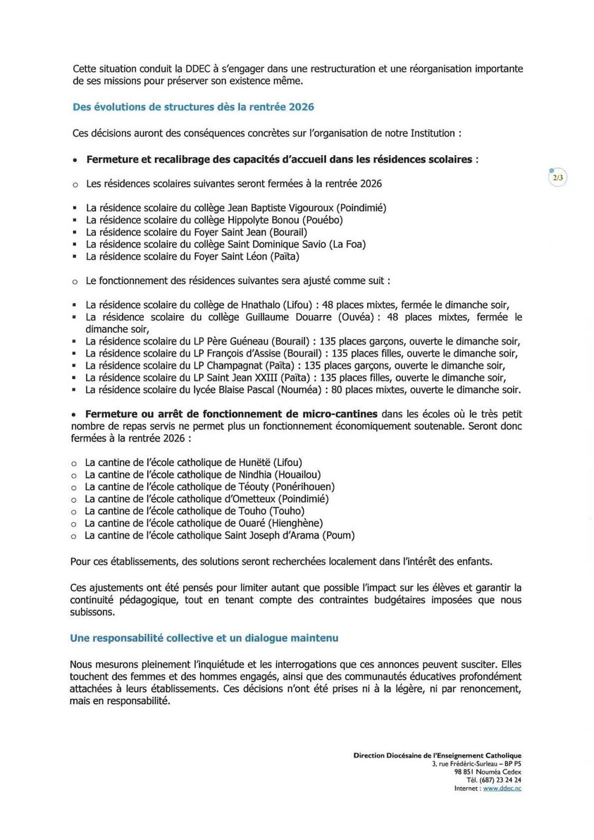 Le point de crispation cristallise une réalité plus profonde. L’enseignement catholique entre de force dans une ère de reddition des comptes. L’exemple de l’internat du collège Saint-Dominique Savio, à La Foa, dont une fermeture est évoquée sans décision actée, illustre ce flottement qui exaspère les collectivités.